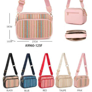 Bolso Bandolera de Mujer con Diseño Rayas de Colores y Bolsillos Exteriores con Cremallera