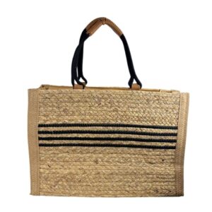 Amplio Bolso Canasta de Papel con 2 Asas, Diseño de Rayas y Cierre de Cremallera para Mujer