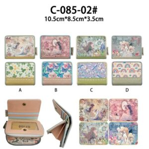 Monedero Compacto y Sintético de Mujer con Muñeca Sweet Candy, Caja y Espacio para Tarjetas