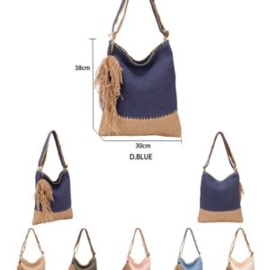 Amplio Bolso de Lino para Mujer con Asa Larga, Cierre de Cremallera y Flecos Decorativos
