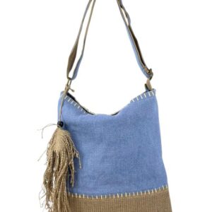 Capazo Artesanal Africano de Lino y Yerba Autóctona con Solapa, Asa Larga y Diseño Exclusivo