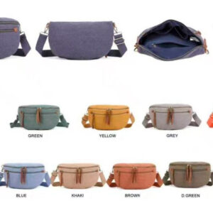 Riñonera de Lino Lavado para Mujer con Bolsillo Frontal y Cierre de 2 Cremalleras