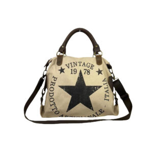 Bolso de Lona para Mujer con Asas Largas, Tira Bandolera y Bolsillo Trasero