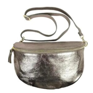 Riñonera de Serraje y Piel Italiana con Efecto Metalizado para Mujer