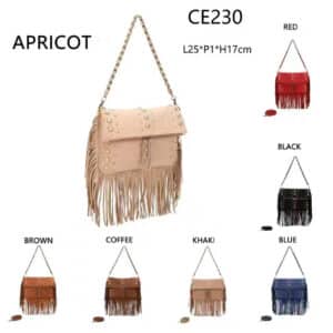Bolso de Hombro Sintético Tipo Serraje con Flecos y Piedras Frontales Decorativas para Mujer