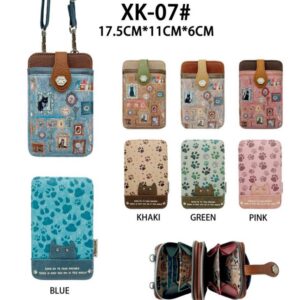 Bolsito Portamovil Sintético con Diseño Gato Sweet Candy, Solapa y Cremallera para Mujer