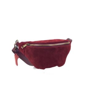 Riñonera de Piel Italiana con Frontal de Serraje, Cremallera y Bolsillo Interno para Mujer