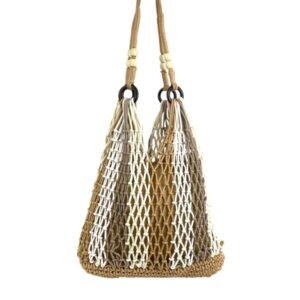 Amplio Bolso de Ganchillo con Asas Largas y Saquito Interno de Cuerdas para Mujer