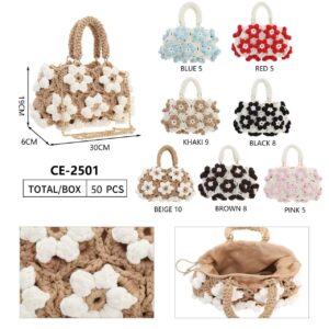 Bolso de Mano en Algodón Tipo Ganchillo con Diseño de Flores y Saquito Interno para Mujer