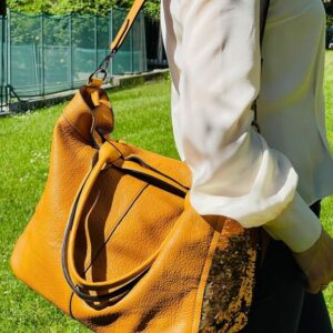 Bolso de Mano en Piel Italiana con Diseño Original, Tachuelas y Asa Larga de Cadena para Mujer