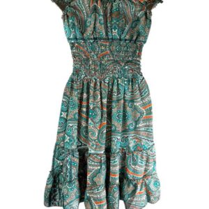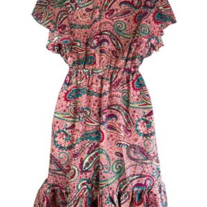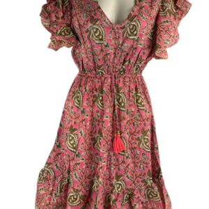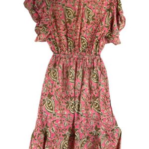 Cómodo y Ligero Vestido Artesanal en Seda India con Volantes, Escote y Talla Única para Mujer