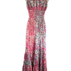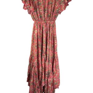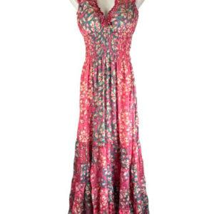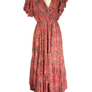 Vestido Largo Artesanal en Seda India con Escote con Volantes y Talla Única para Mujer