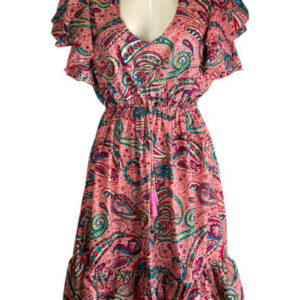 Vestido Artesanal para Mujer en Seda India con Volantes en el Escote, Talla Única y Gran Calidad