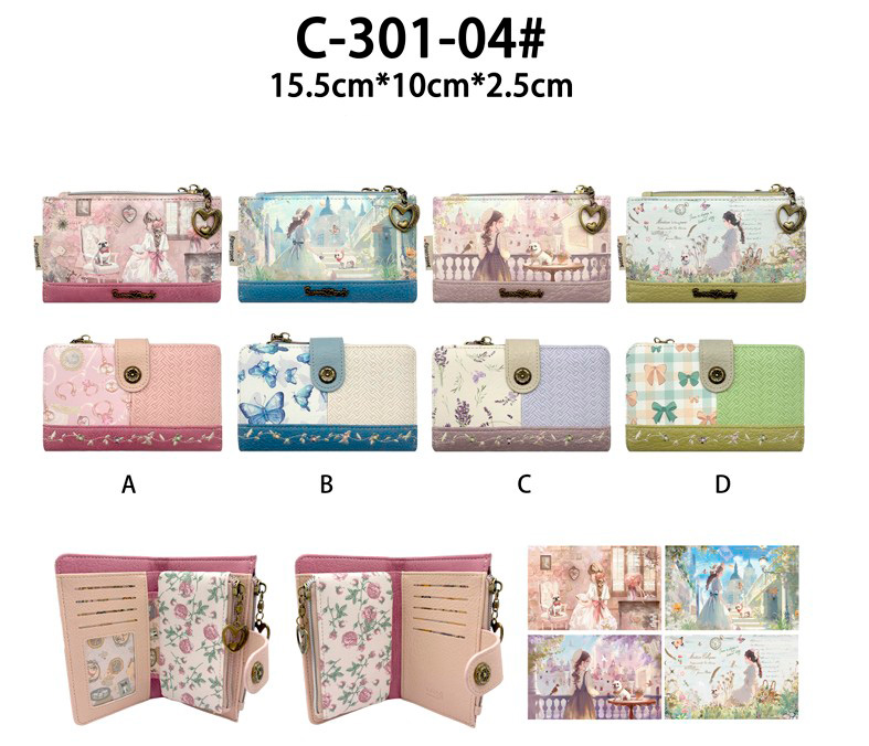 Monedero Sintético de Mujer con Muñeca Sweet Candy, Caja, Bolsillo Interno y Mini Solapa de Botón