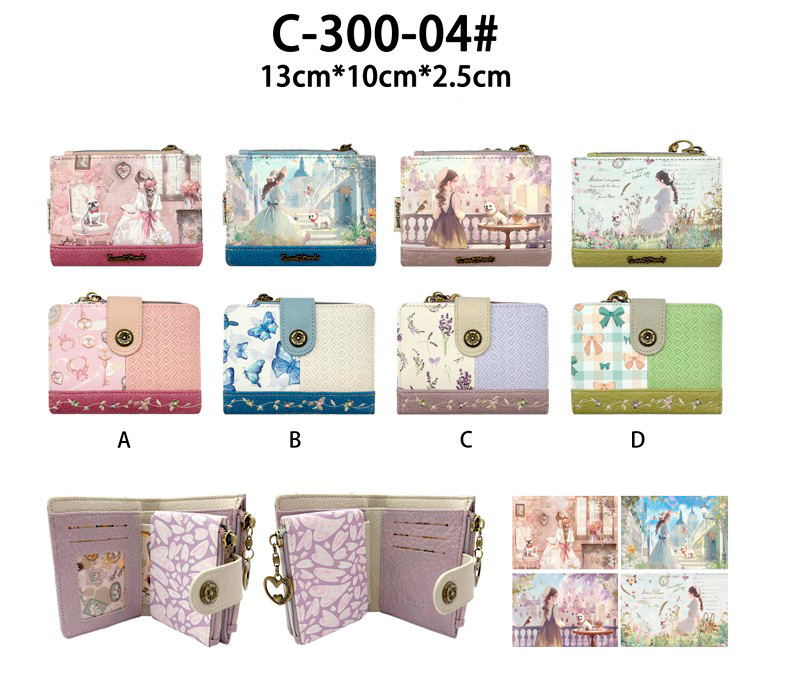 Monedero Sintético de Mujer con Diseño de Muñeca, Caja, Bolsillo Interno y Mini Solapa de Botón. Colección Sweet Candy.