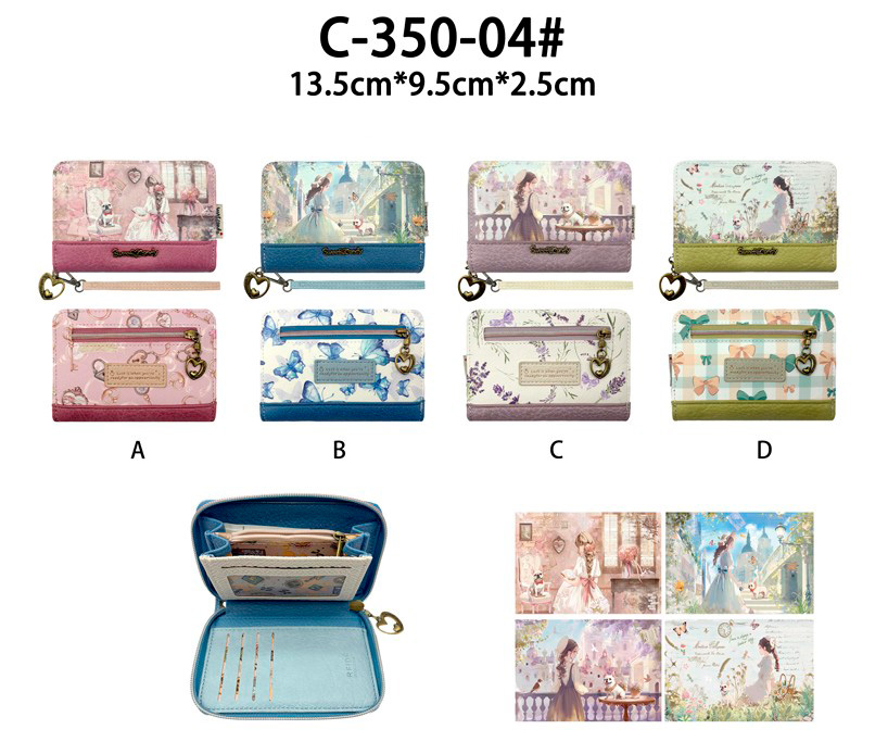 Monedero Sintético con Diseño de Muñeca, Asa Corta Extraíble y Bolsillo Trasero con Cierre de Cremallera para Mujer. Colección Sweet Candy.