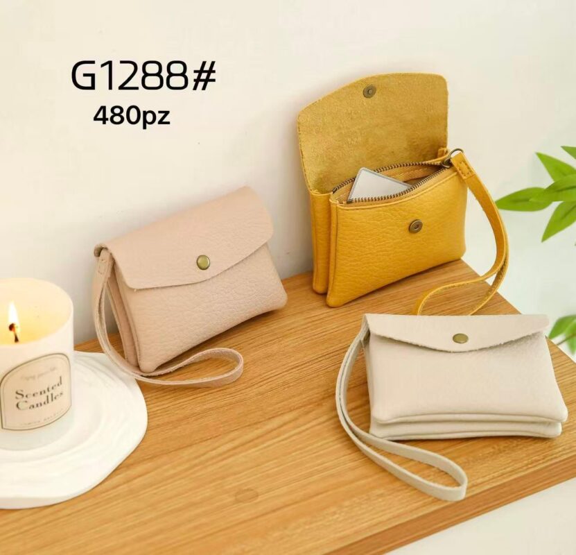 Monedero Multicolor de Piel con Diseño Exclusivo, Asa Corta y 2 Bolsillos para Mujer