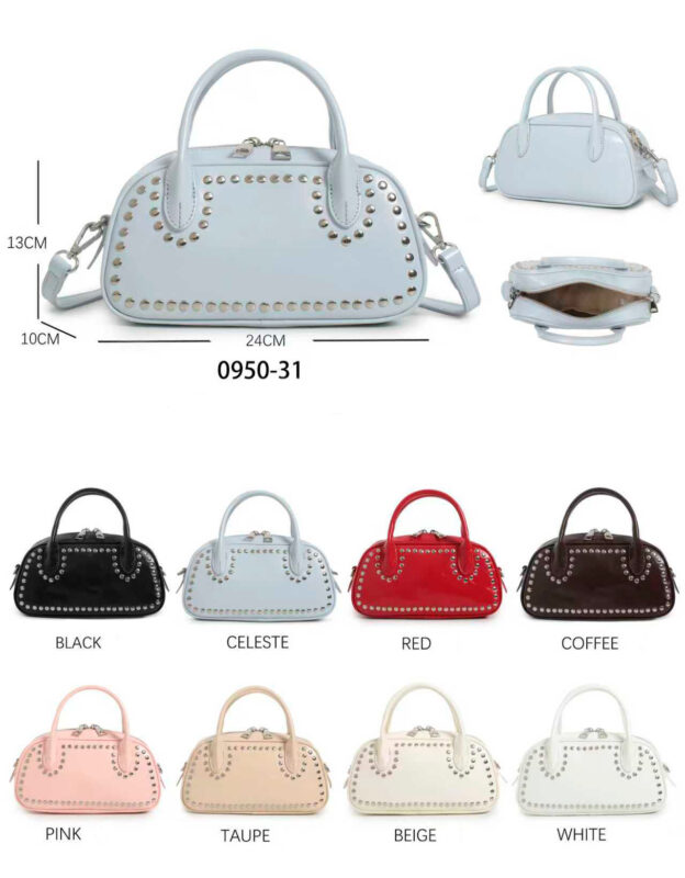 Bolso de Mano Sintético tipo Bowling con Tachuelas Frontales y 2 Cremalleras para Mujer
