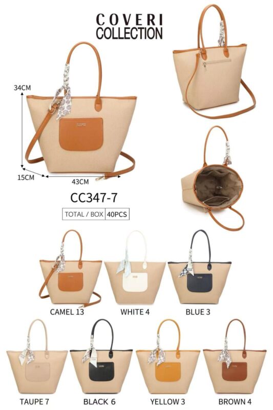 Amplio Bolso Sintético Coveri Collection con Compartimento Frontal y Pañuelo Decorativo de Mujer
