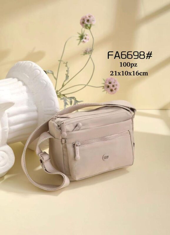 Bolso Bandolera en Tela Nylon para Mujer con 5 Compartimentos con Cierre de Cremallera
