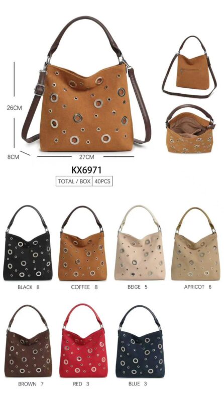 Bolso de Mano Sintético Hobo con Agujeros Frontales, Bolsillo Trasero y Tira Bandolera de Mujer