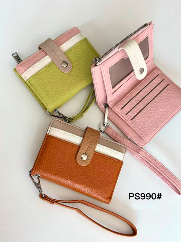 Monedero Sintético Tricolor de Mujer con Asa Corta Extraíble y Espacio para Tarjetas