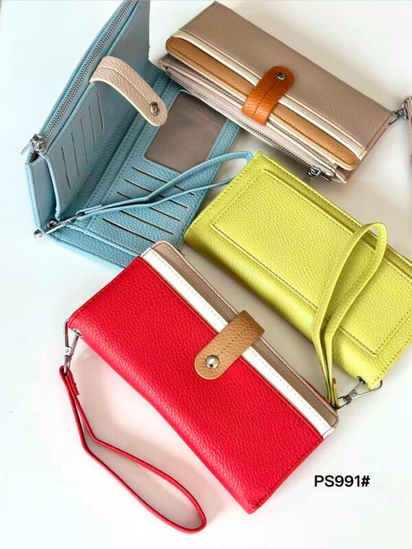 Cartera Larga Sintética Tricolor con Asa Corta Extraíble y Espacio para Tarjetas de Mujer