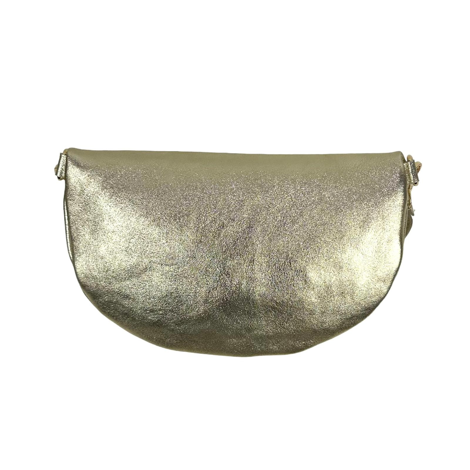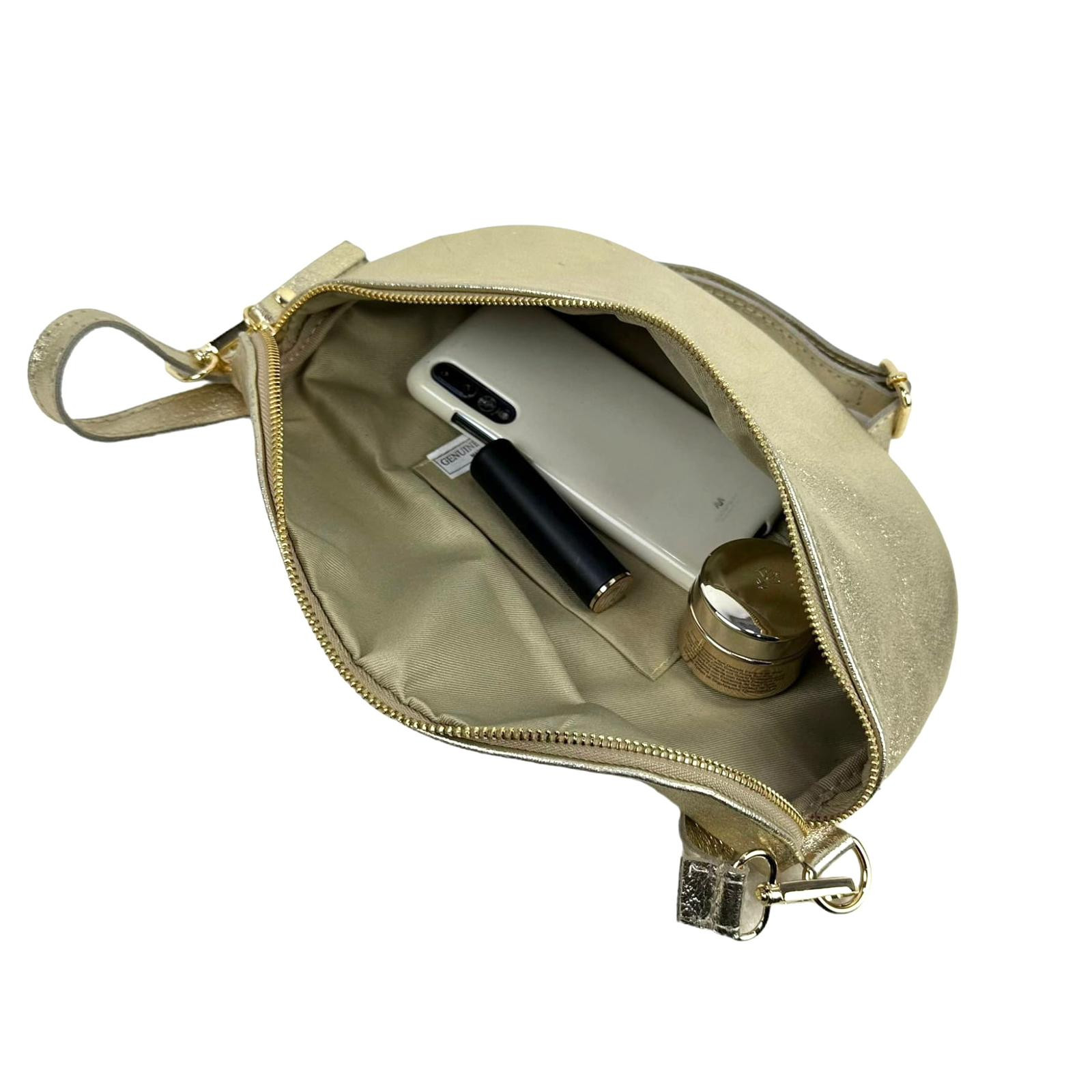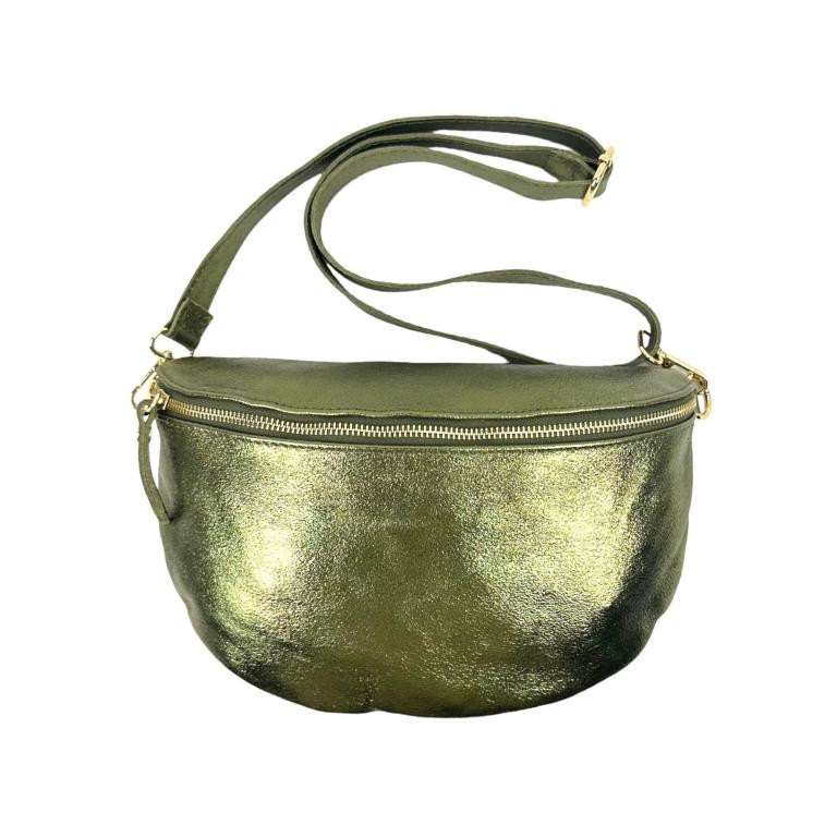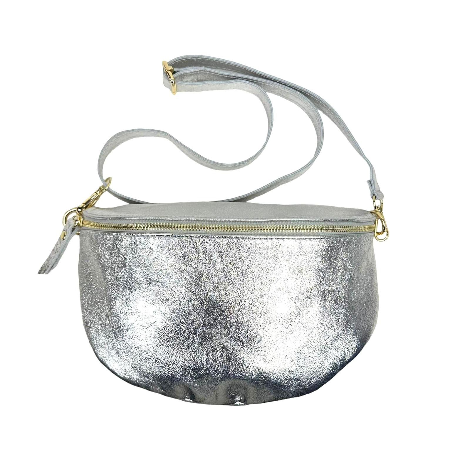 Amplia Riñonera Metalizada de Piel Italiana para Mujer con Efecto Brillante. Fabricado en Italia.