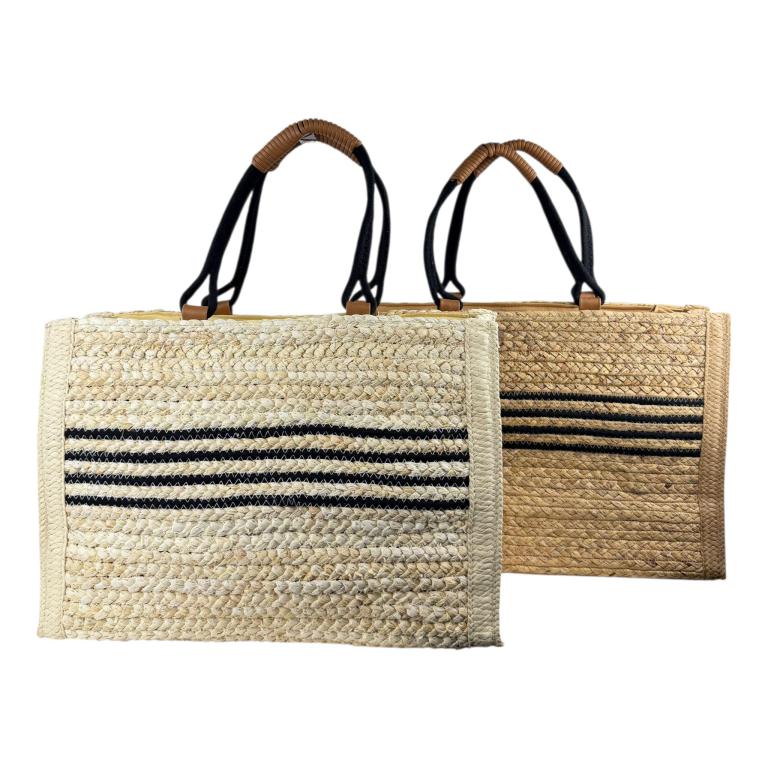Amplio Bolso Canasta de Papel con 2 Asas Largas, Diseño de Rayas y Cierre de Cremallera para Mujer.