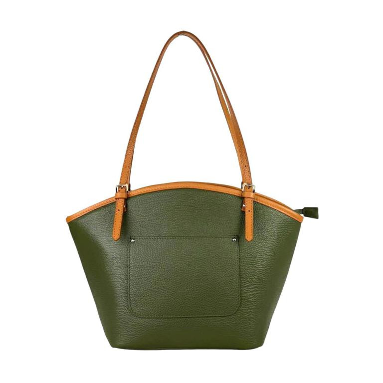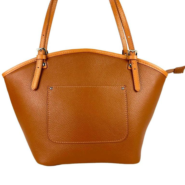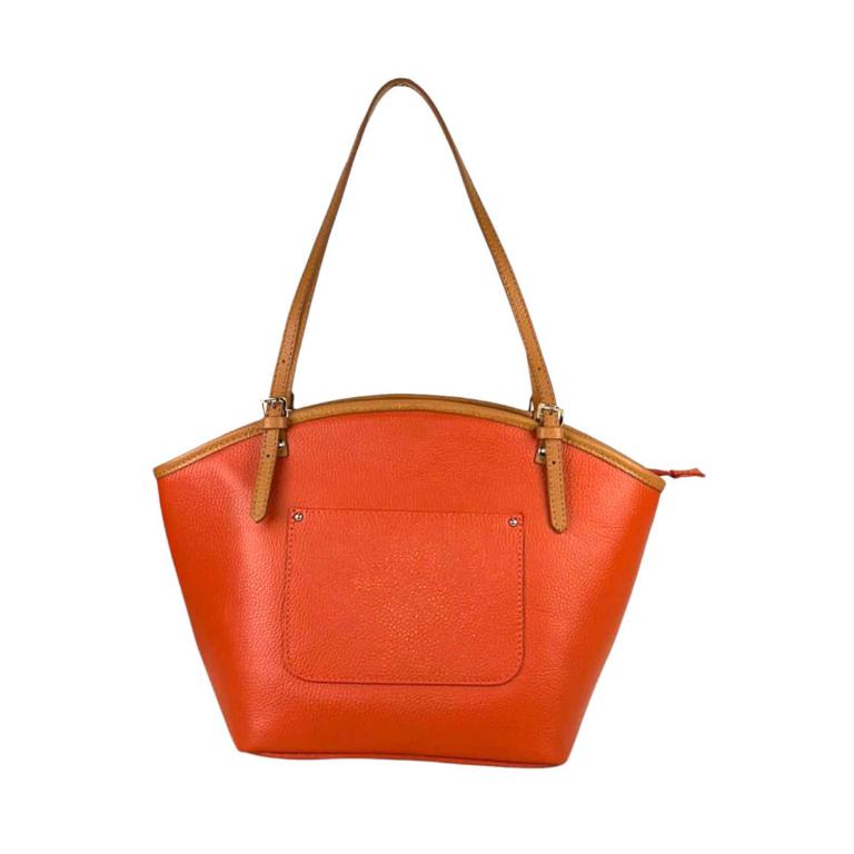 Amplio Bolso de Hombro en Piel para Mujer con 2 Asas Largas y Bolsillos Exteriores Fabricado en Italia.