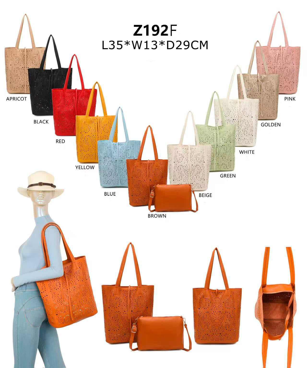 Amplio Bolso de Hombro Sintético tipo Tote con Agujeros + Bolsito Bandolera Extra para Mujer