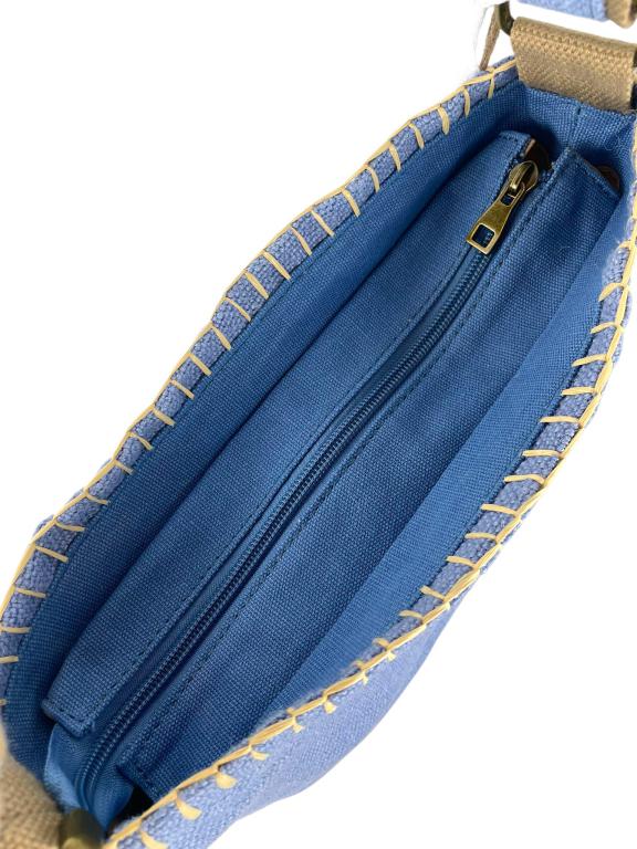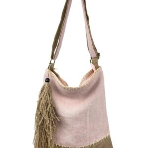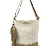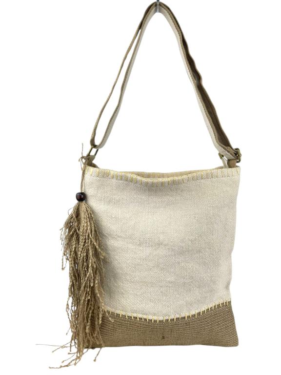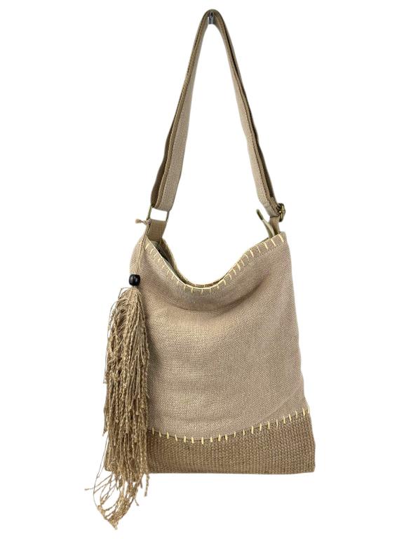 Amplio Bolso de Lino para Mujer con Asa Larga, Cierre de Cremallera y Flecos Decorativos. Fabricado en India.