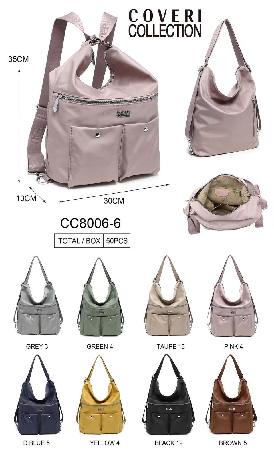 Amplio Bolso-Mochila en Tela Nylon con 4 Bolsillos Exteriores para Mujer. Colección Coveri Collection.
