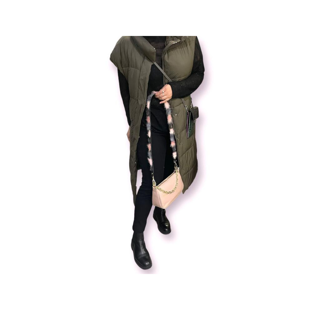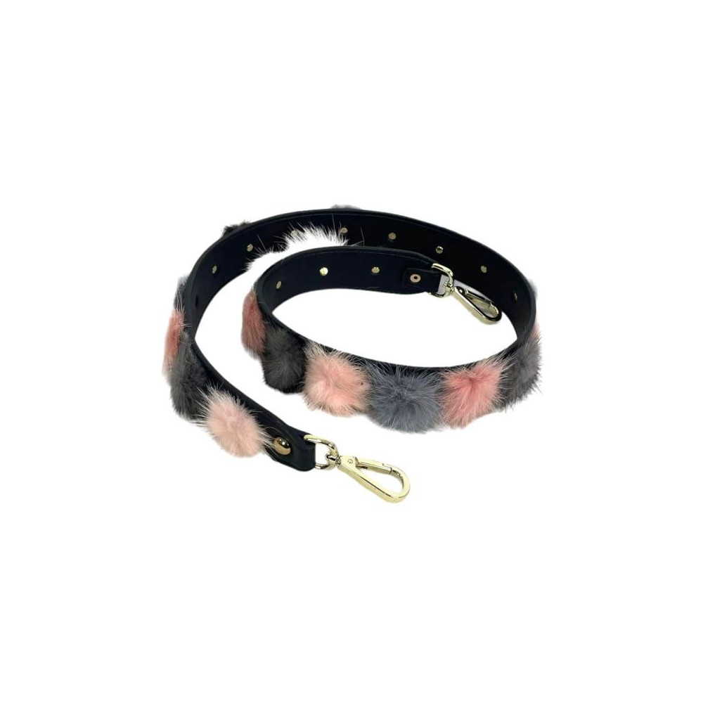 Asa para Bolso de Piel con Pompones Decorativos de Pelito y hebilla dorada extraíble. Fabricado en Italia.