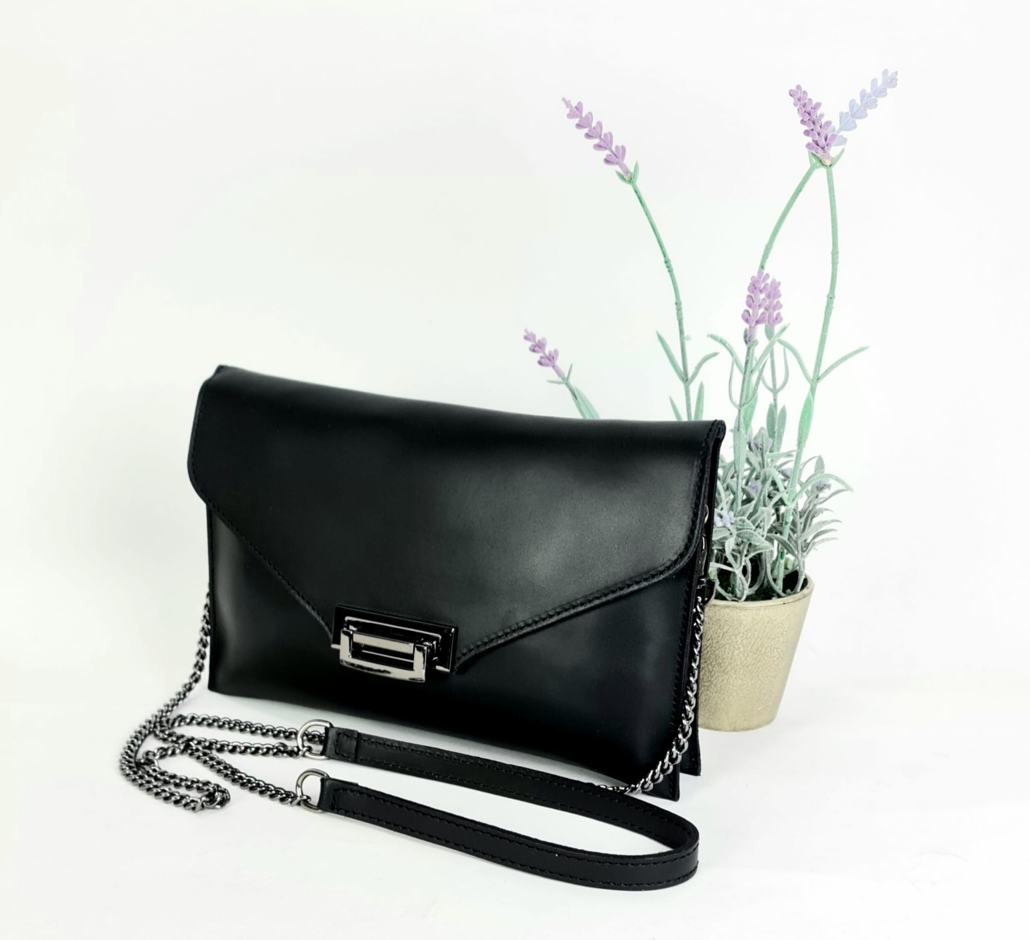 Bandolera de Piel Italiana con Solapa de Broche y 2 Compartimentos para Mujer