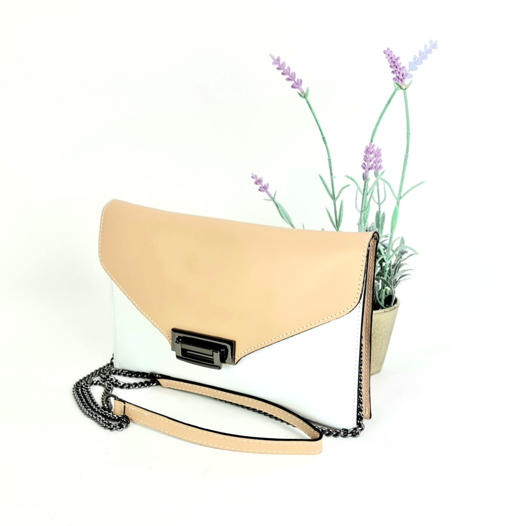 Bandolera de Piel con Solapa de Broche y 2 Compartimentos para Mujer. Fabricado en Italia.