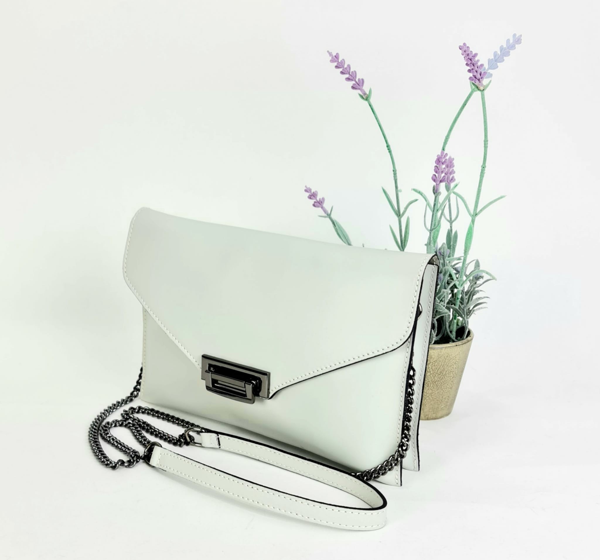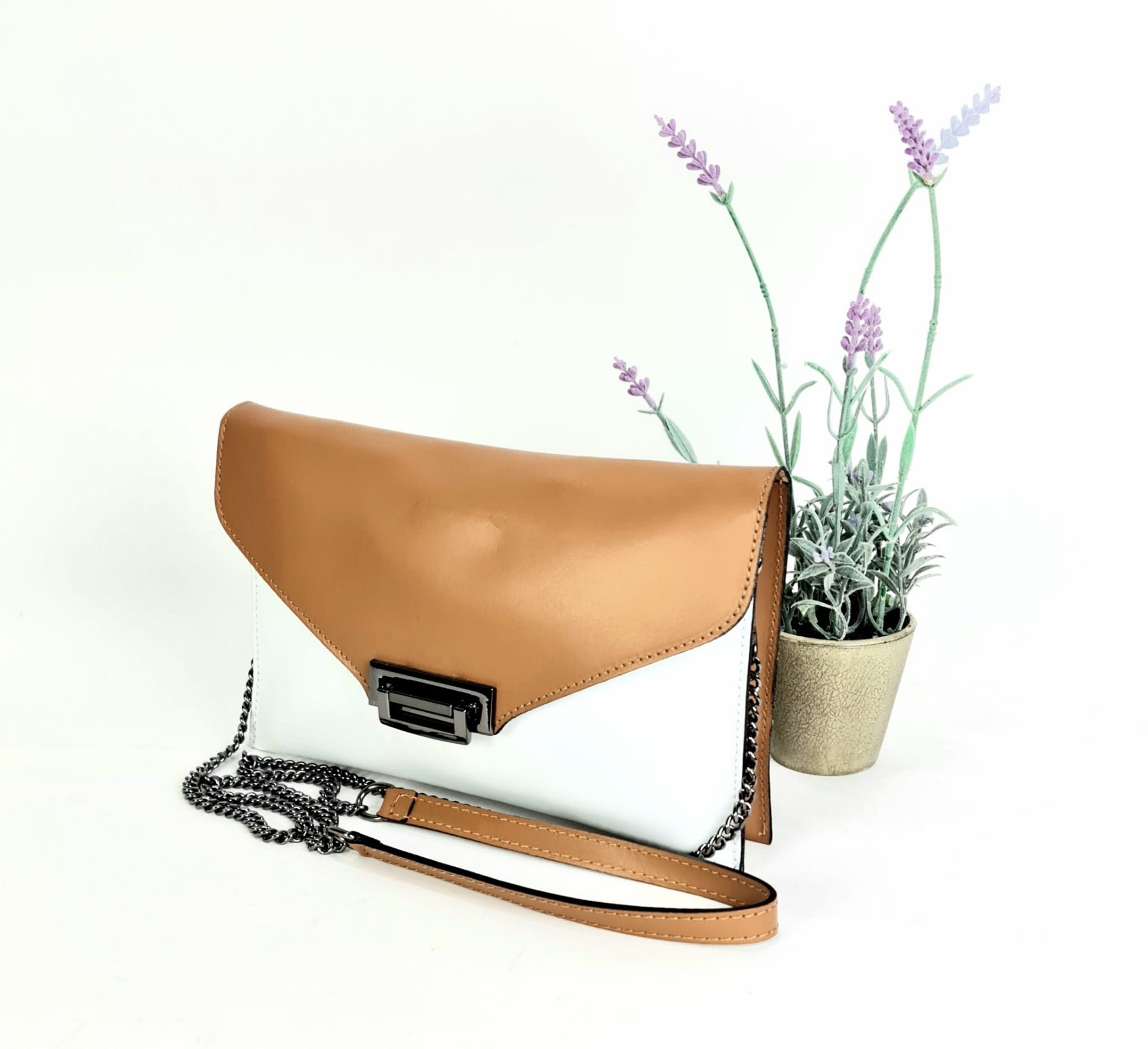 Bandolera de Piel Italiana con Solapa de Broche y 2 Compartimentos para Mujer.