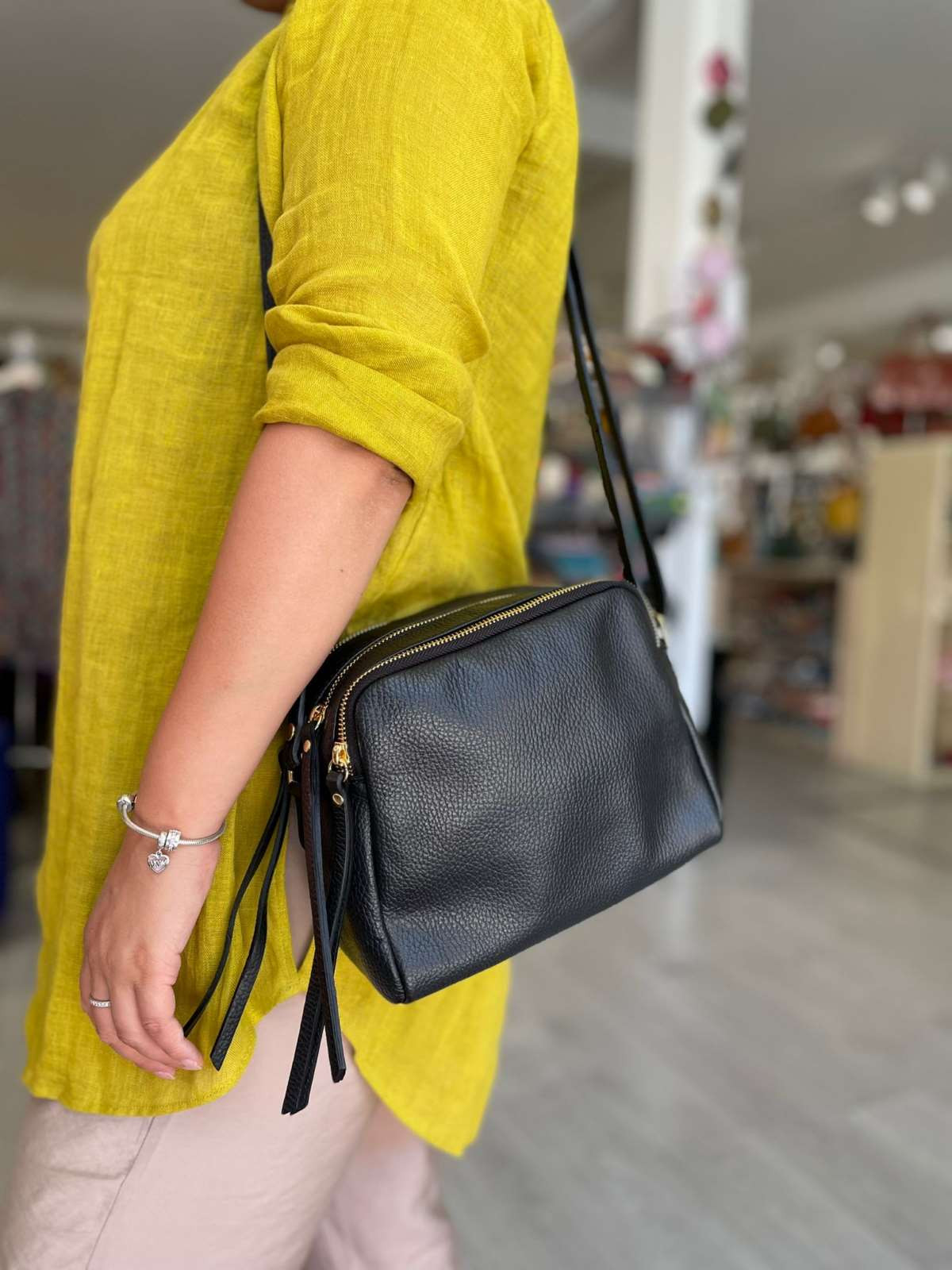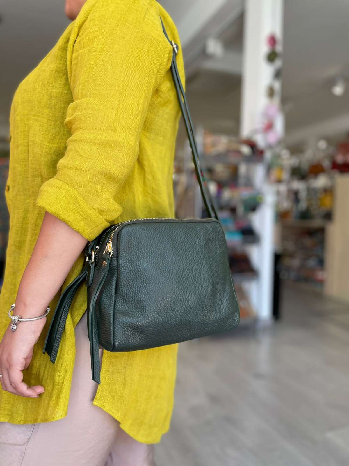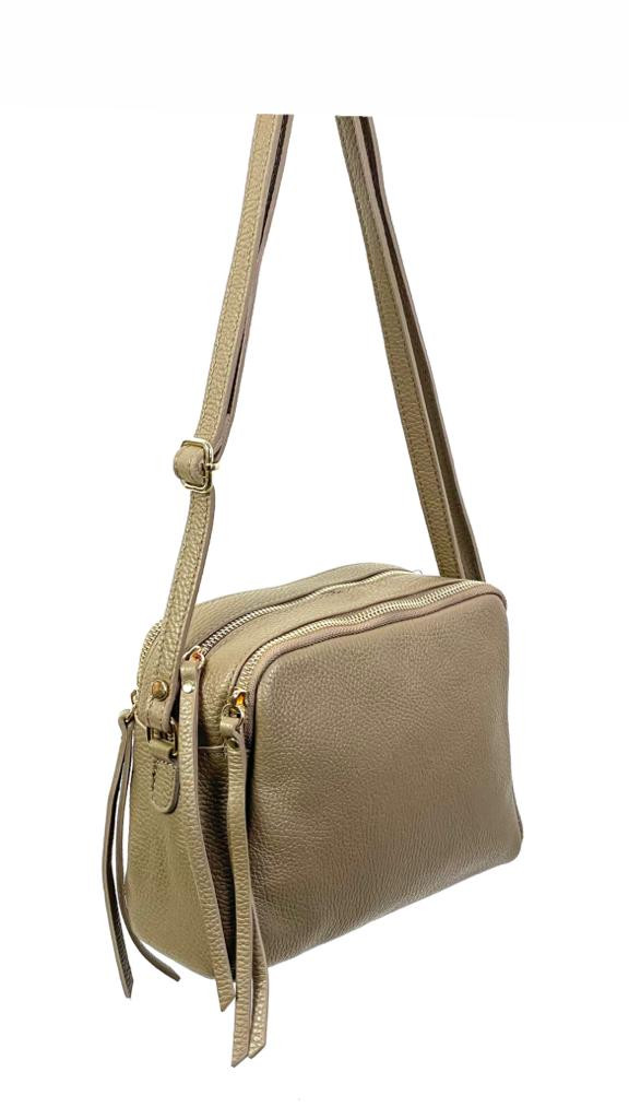 Más sorpresas: Asa larga de piel para llevar al hombro.