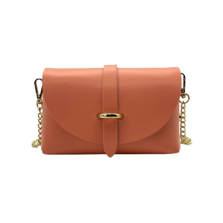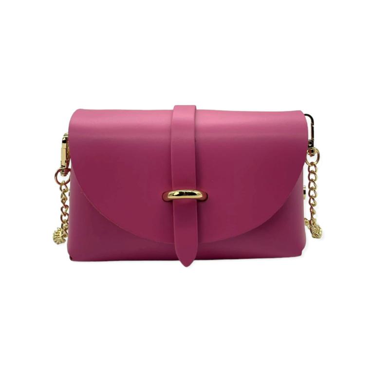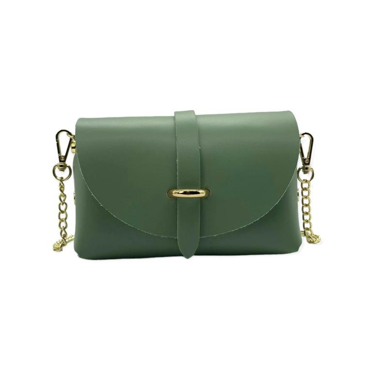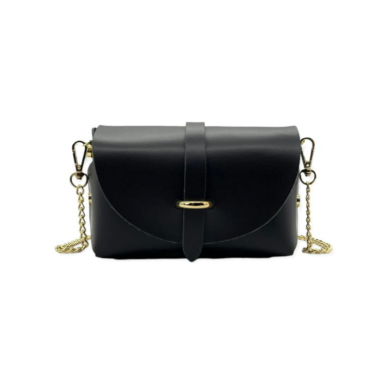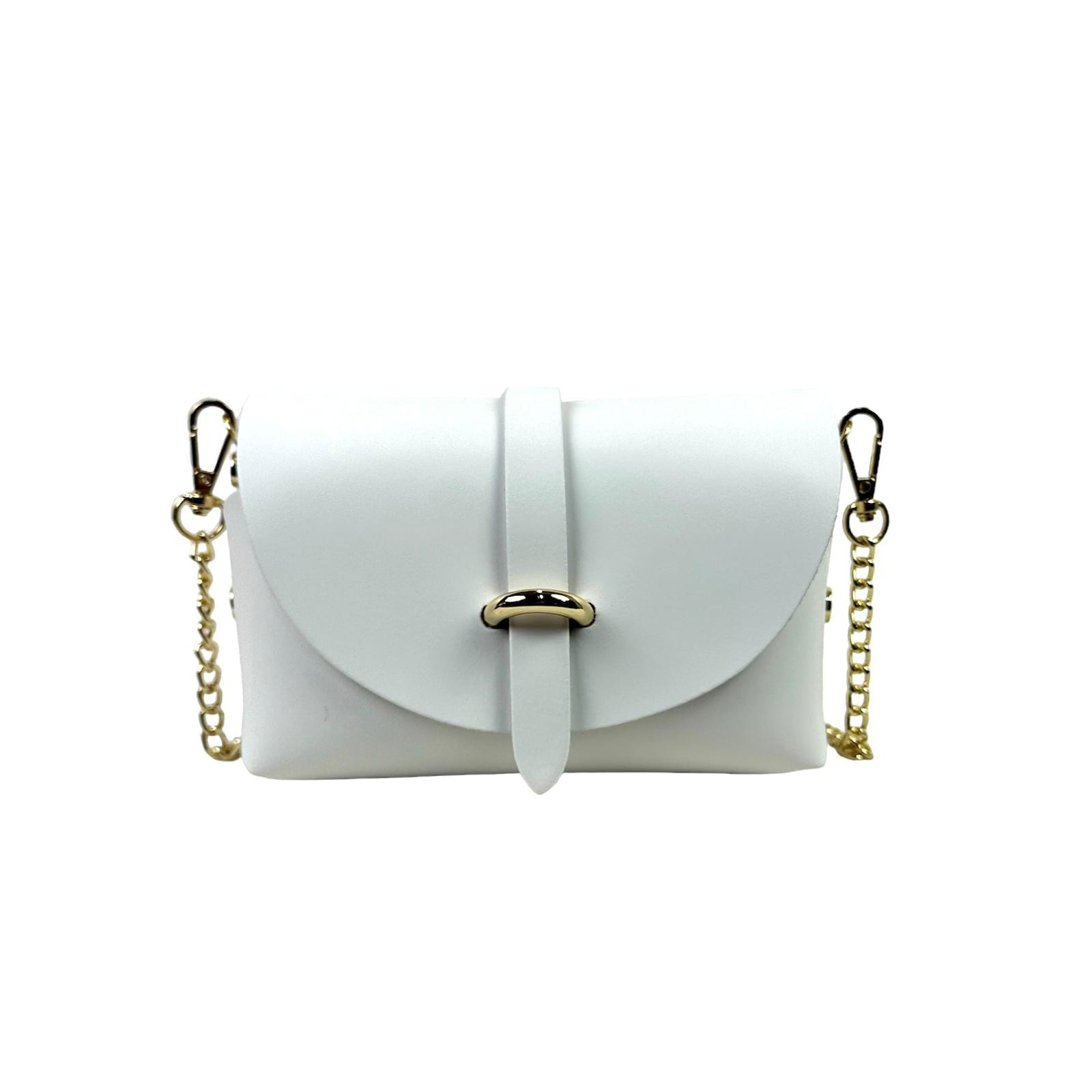 Bolsito Compacto de Piel con Solapa y Asa de Cadena extraible para Mujer. Fabricado en Italia.