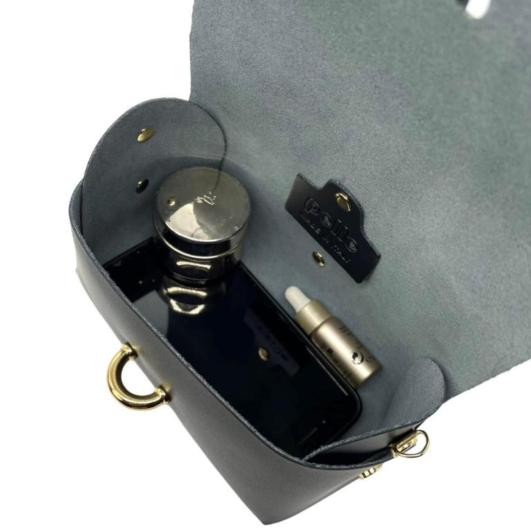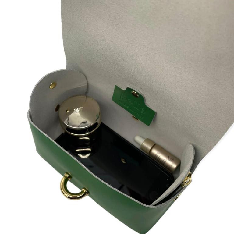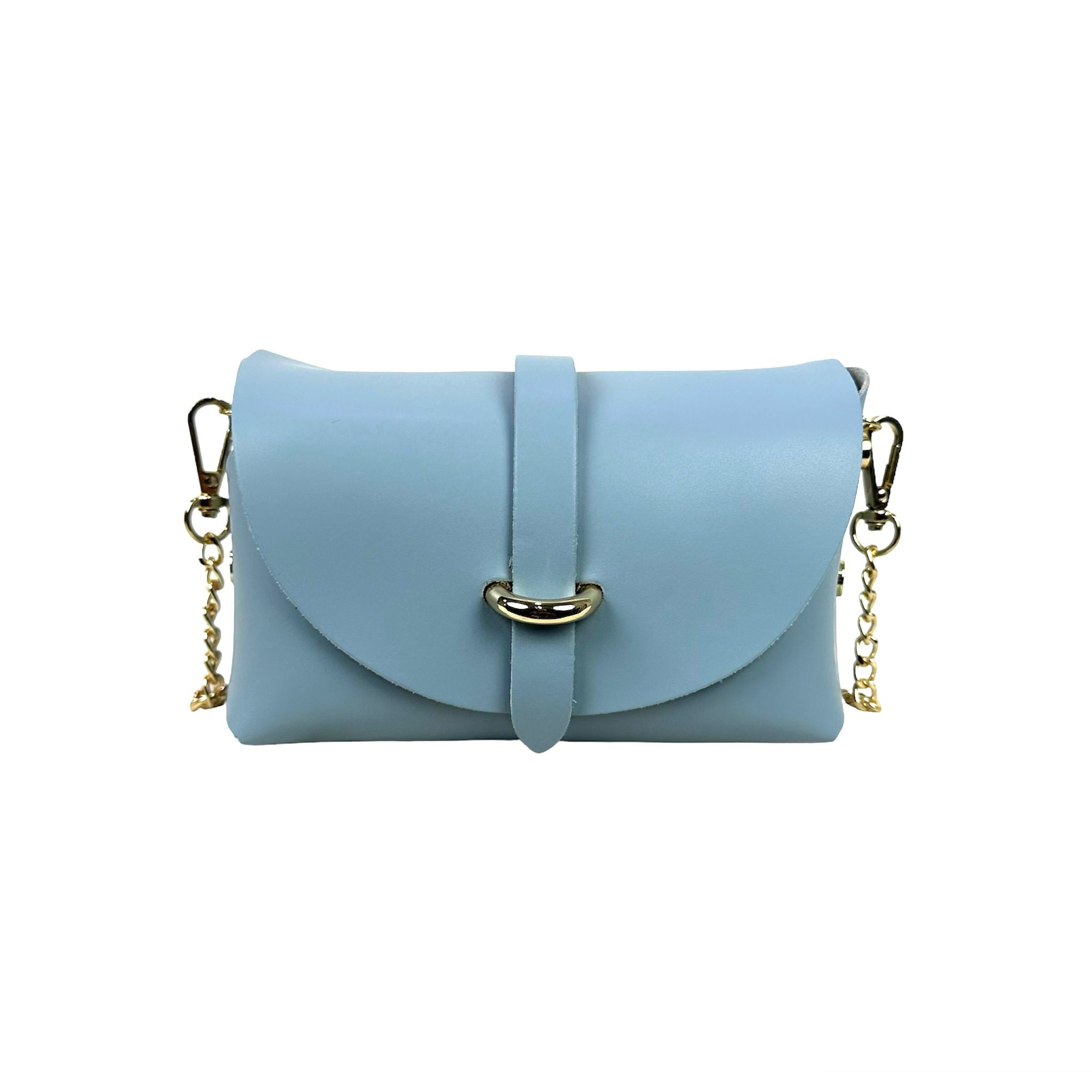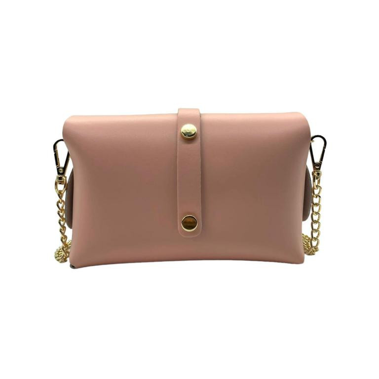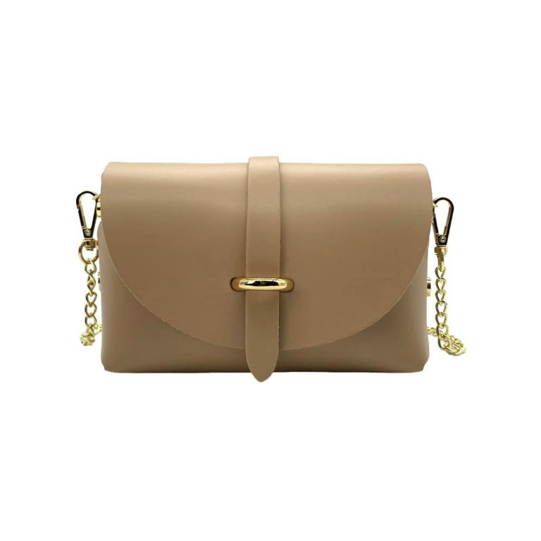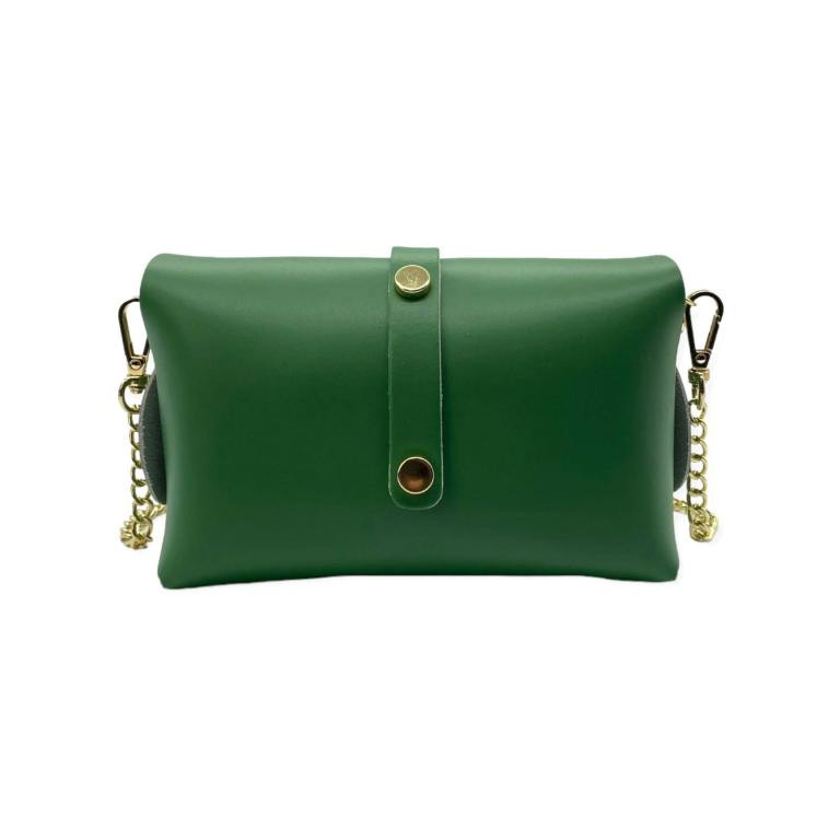 Bolsito Compacto de Piel con Solapa y Asa de Cadena extraible para Mujer. Fabricado en Italia.