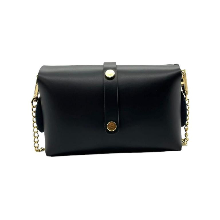 Bolsito Compacto de Piel con Solapa y Asa de Cadena extraible dorada para Mujer
