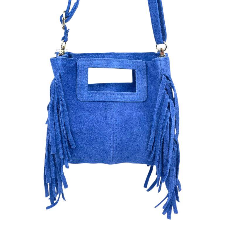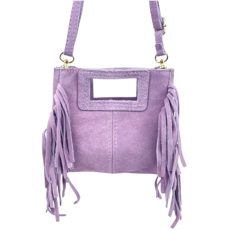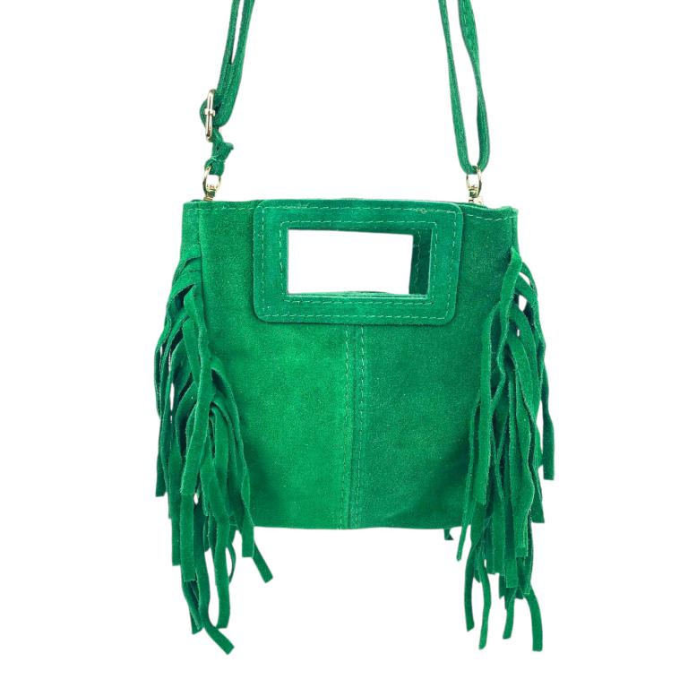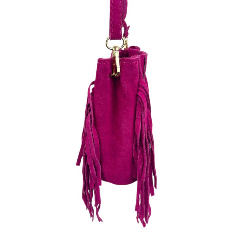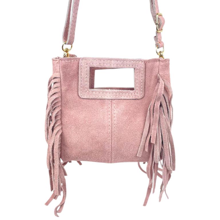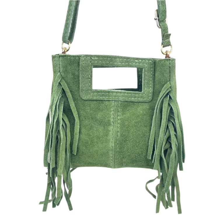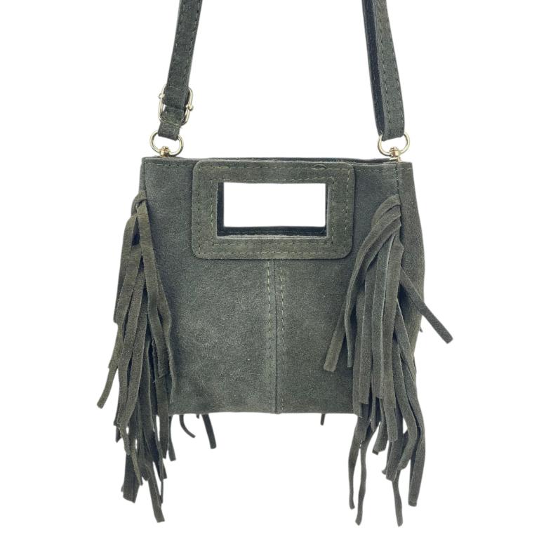 Bolsito de Mano Compacto en Piel de Serraje Italiana con Flecos Laterales para Mujer