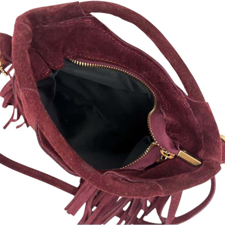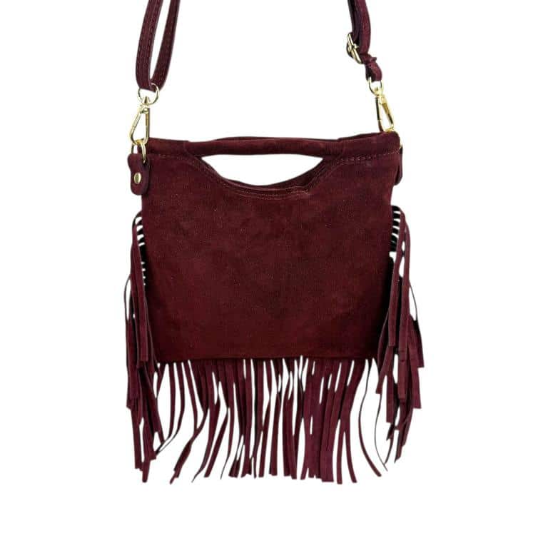 Sé el primero en valorar “Bolsito de Mano Compacto en Piel de Serraje con Tachuelas Frontales y Flecos Decorativos Mujer”