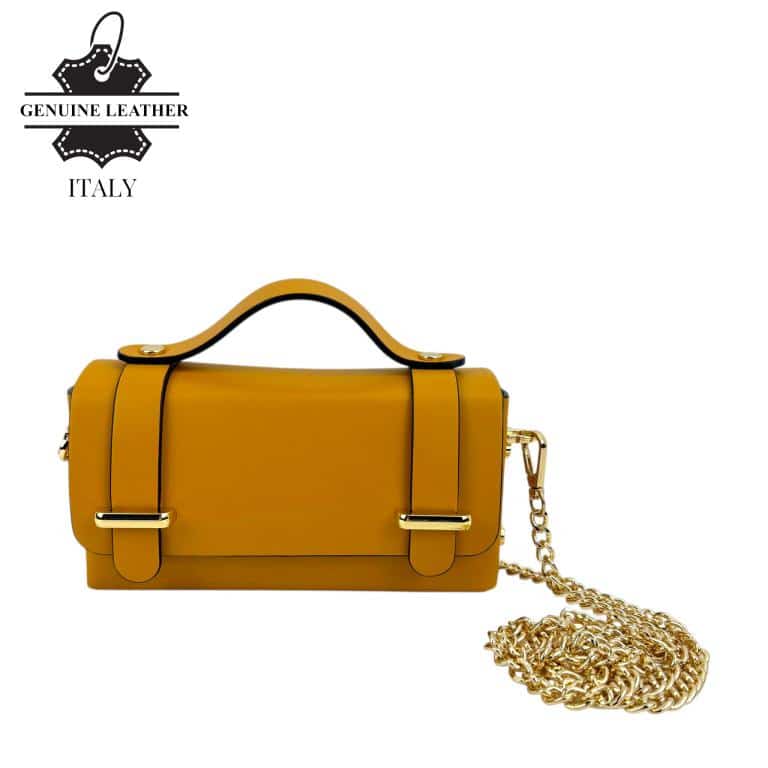 Bolsito de Mano Compacto en Piel con Solapa de 2 Botones y Tachuelas Decorativas en la Parte Trasera y a Ambos Lados para Mujer. Fabricado en Italia.