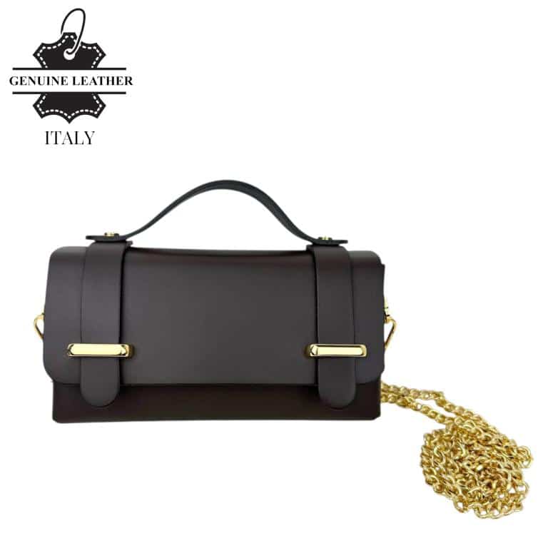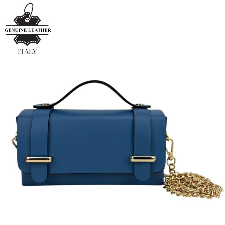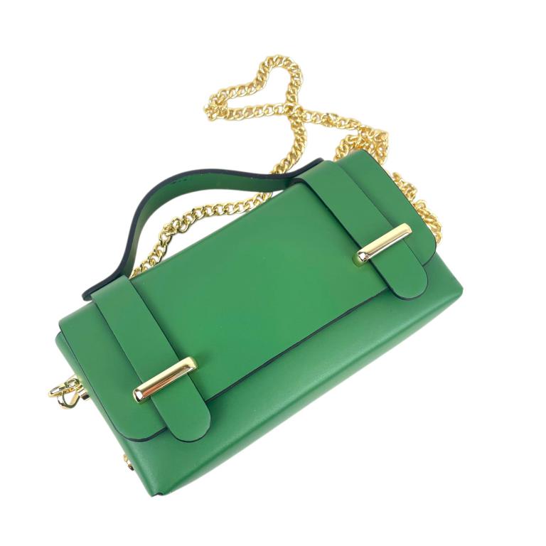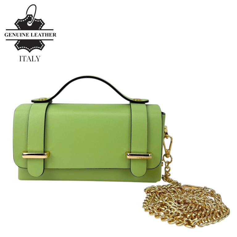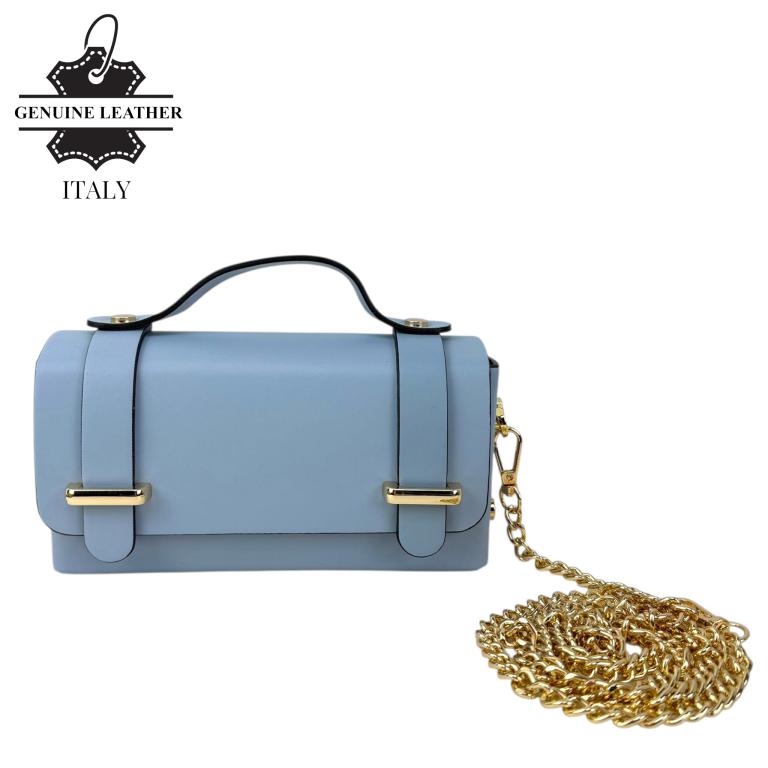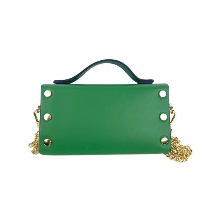 Bolsito de Mano Compacto en Piel con Solapa de 2 Botones y Tachuelas Decorativas en la Parte Trasera y a Ambos Lados para Mujer. Fabricado en Italia.