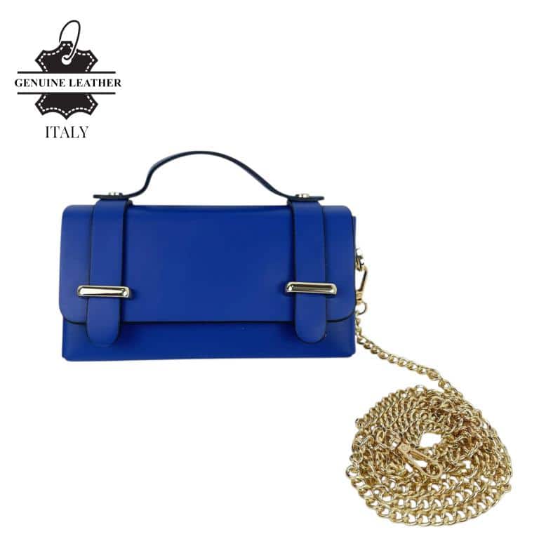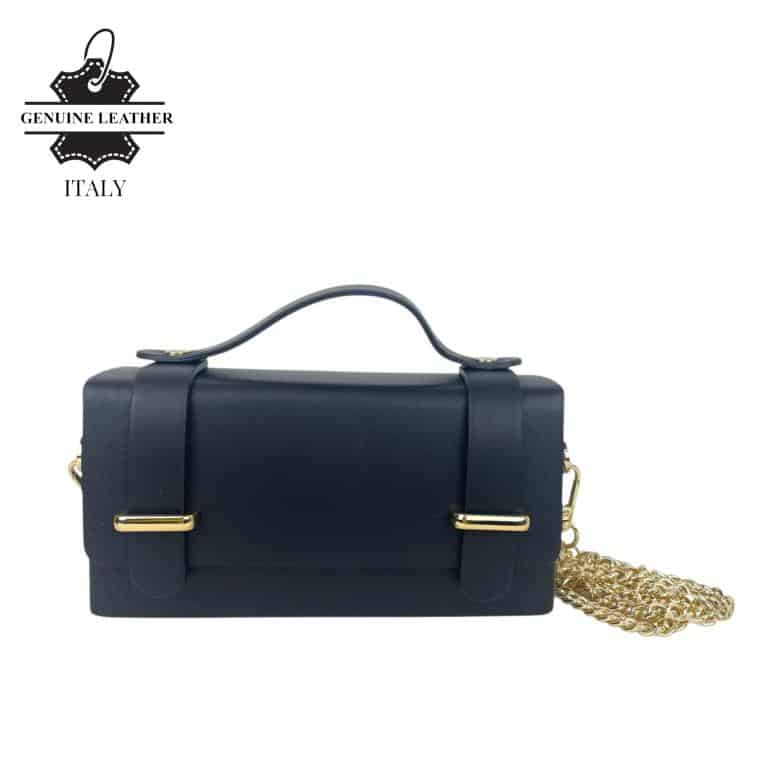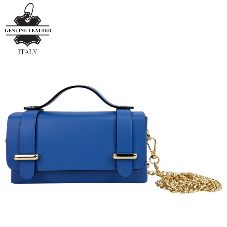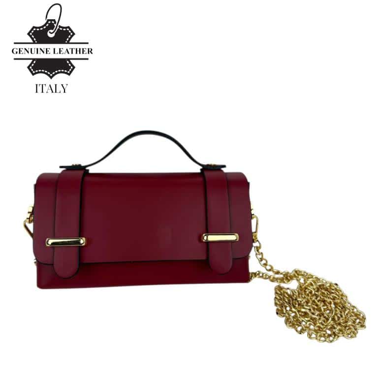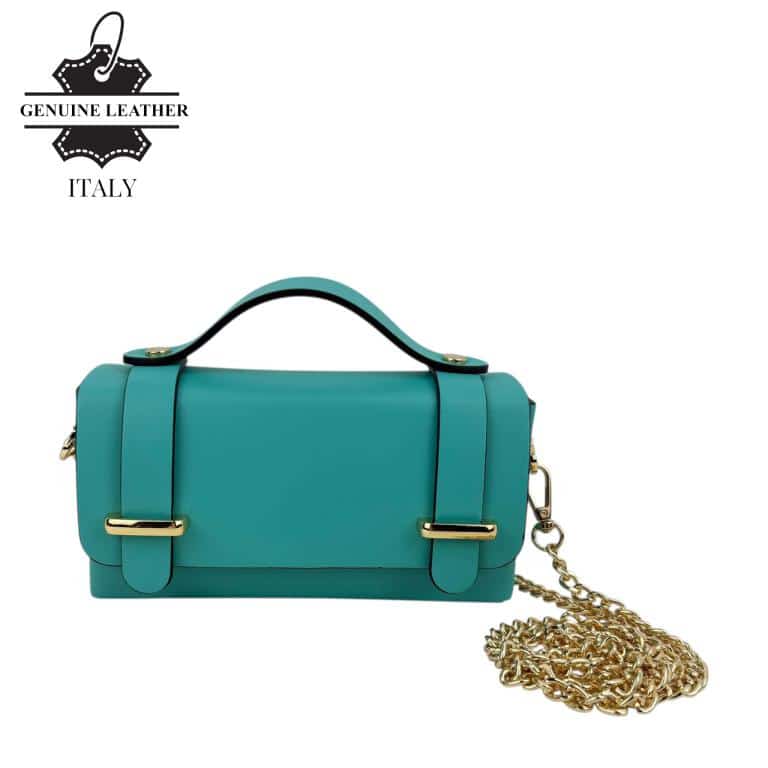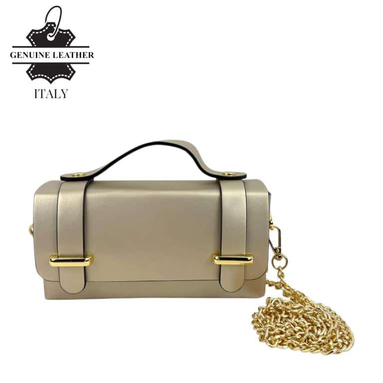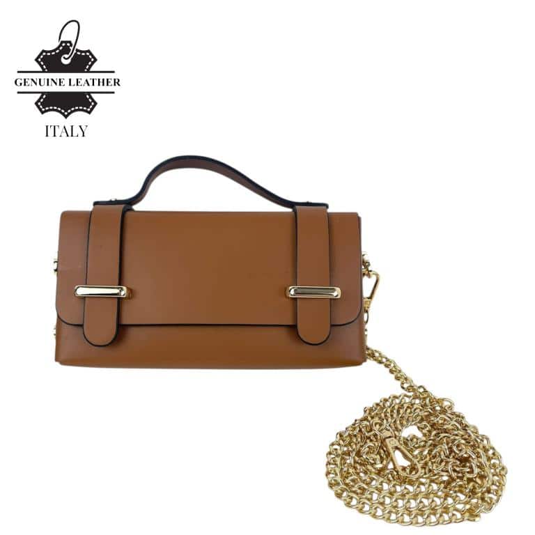 Bolsito de Mano Compacto en Piel con Solapa de 2 Botones y Tachuelas Decorativas en la Parte Trasera y a Ambos Lados para Mujer. Fabricado en Italia.
