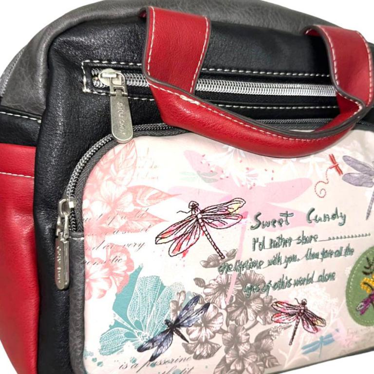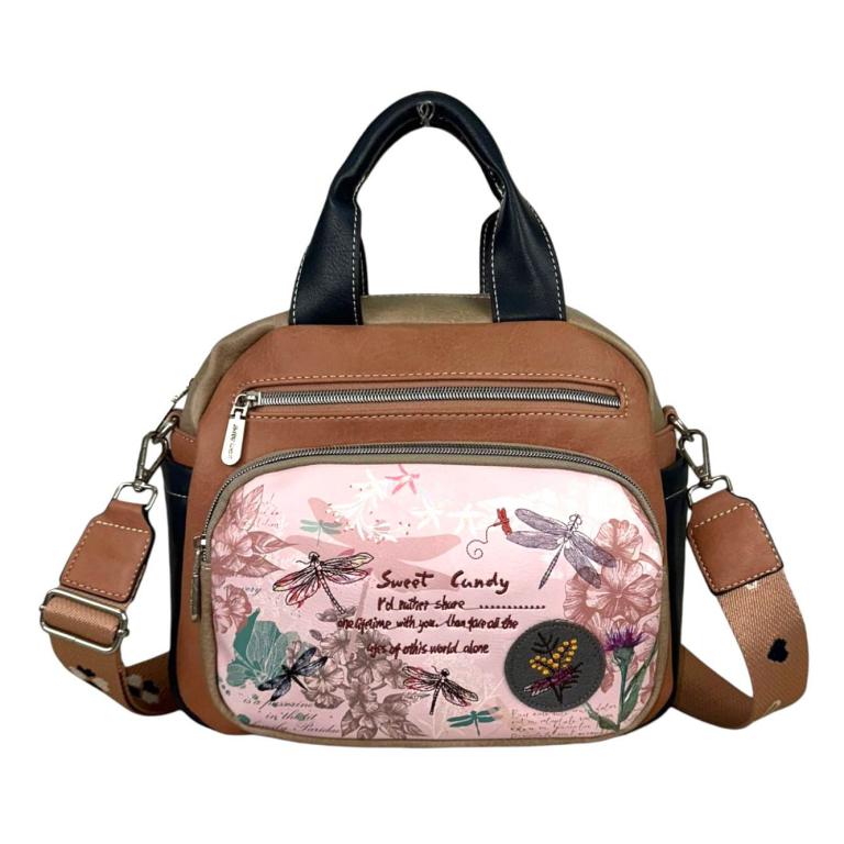Bolso Bandolera Sweet Candy con Diseño Libélula, Asa Corta, Tira Bandolera Ajustable y Extraíble y 3 Bolsillos Exteriores para Mujer.