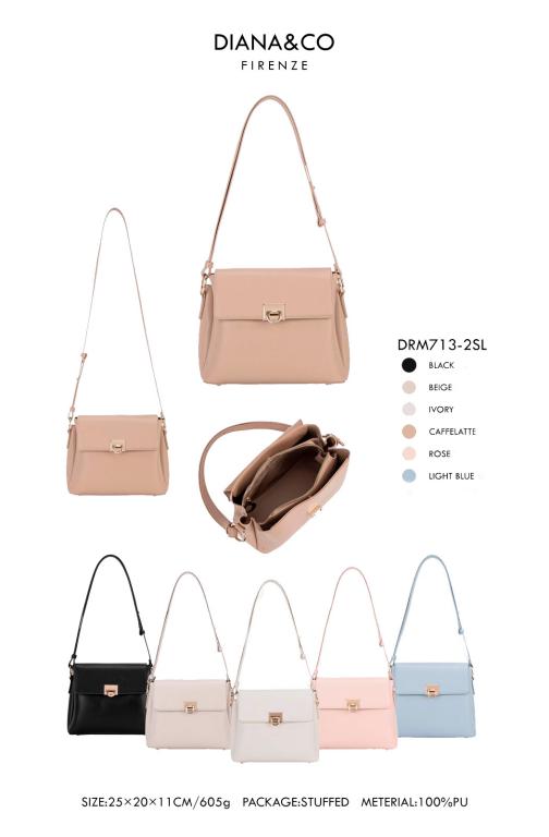 Bolso Bandolera en Piel Sintética para Mujer con Solapa de Giro y 3 Compartimentos Interiores. Colección Diana & Co Firenze.