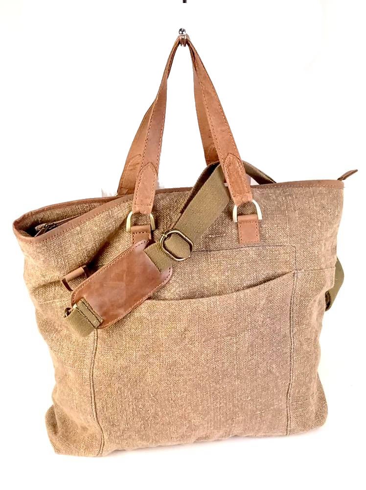 Bandolera fabricada en lino con acabados en piel.