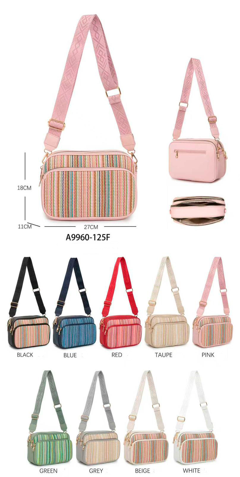 Bolso Bandolera de Mujer con Diseño Rayas de Colores y Bolsillos Exteriores con Cremallera